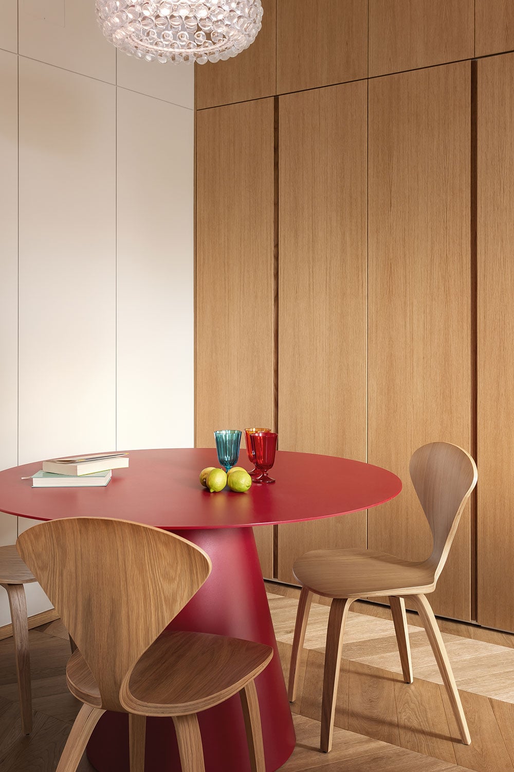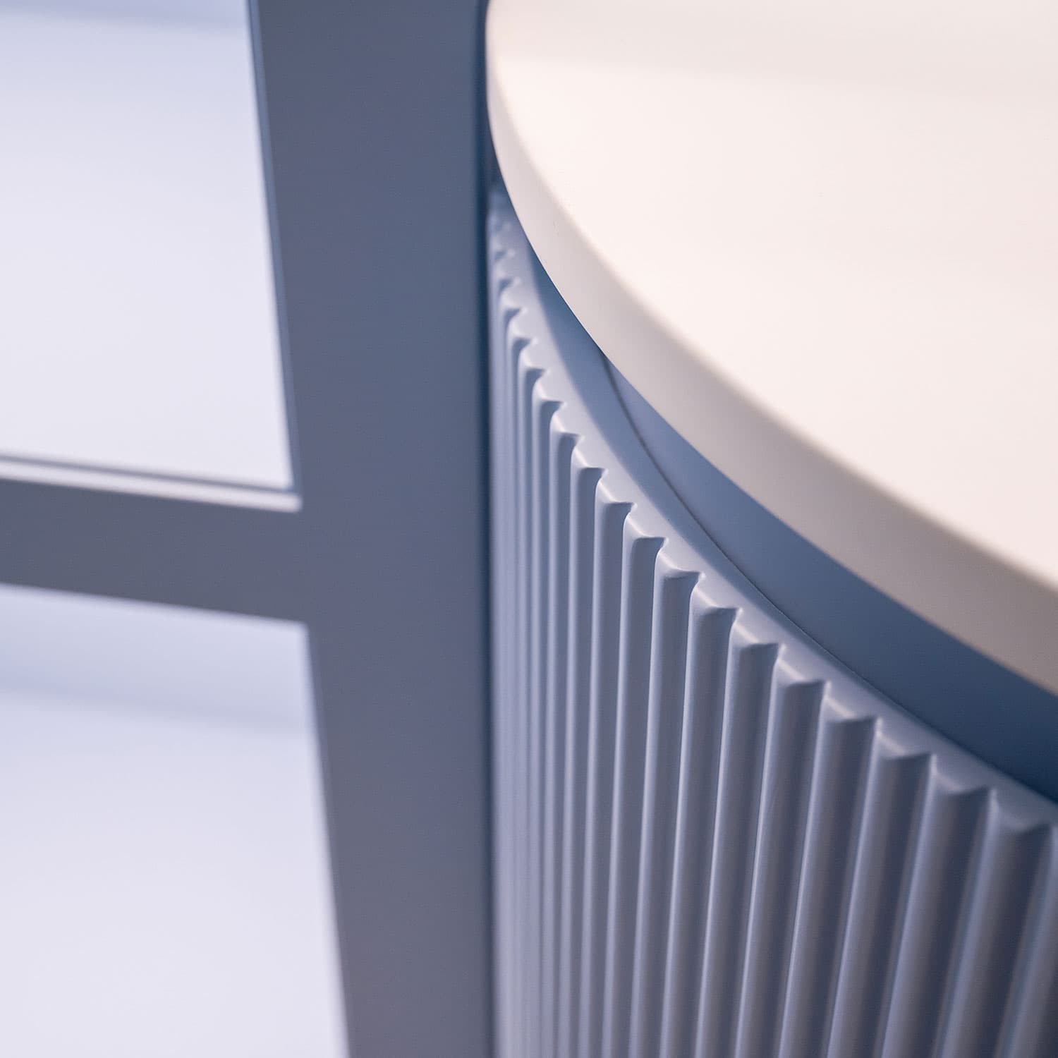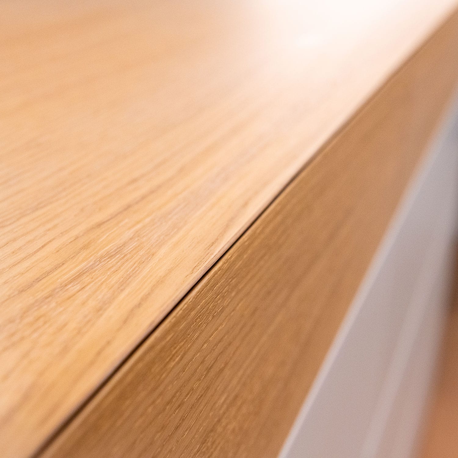 Materiale e caratteristiche: essenza rovere, fenix, finiture laccate a campione, maniglie in massello pantografate